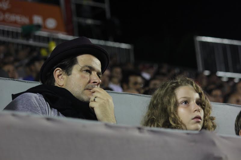 Murilo Benício e o filho Pietro acompanhavam atentos a partida.