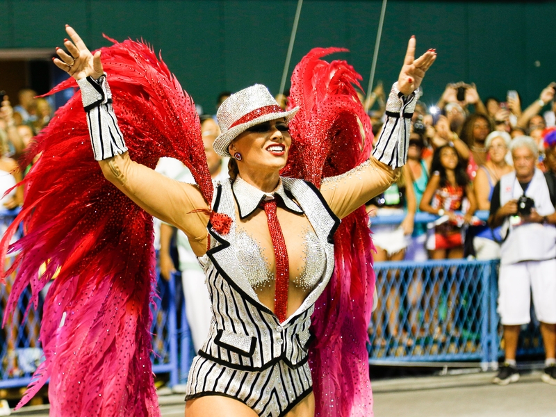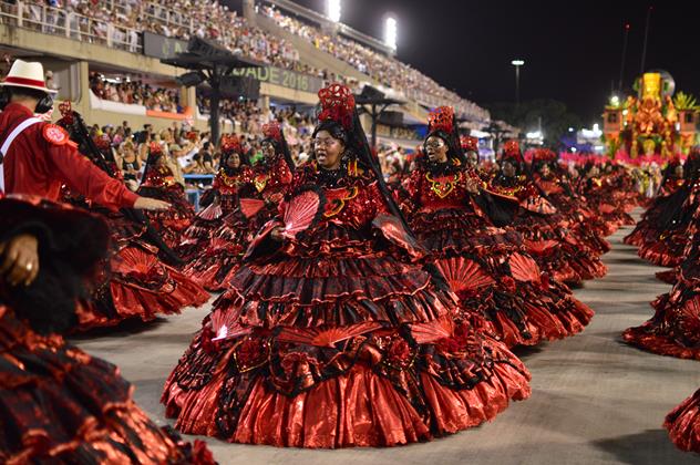 Viviane Araújo e Ludmila brilham durante o desfile do Salgueiro. Segunda escola a desfilar no 2º dia de desfiles do Grupo Especial do Rio, o Salgueiro fez na Sapucaí uma ode à malandragem. Vice-campeã nos dois últimos carnavais, a vermelho e branco trouxe um desfile caprichado e divertido, empolgando as arquibancadas, mas teve problemas técnicos que podem ser decisivos na briga pelo título. As luzes do carro abre-alas se apagaram durante o desfile levando preocupação aos diretores. O enredo “Ópera dos malandros” teve como inspiração a obra a “Ópera do Malandro”, de Chico Buarque, e levou para a avenida o universo dos cabarés, botequins e personagens das ruas e da noite carioca, com direito a um zepelim de cerca de 20 metros sobrevoando a avenida por cima dos ritmistas fantasiados de Geni – personagem da “Ópera do Malandro”. A escola deixou a Sapucaí sob gritos de “É Campeã!”.