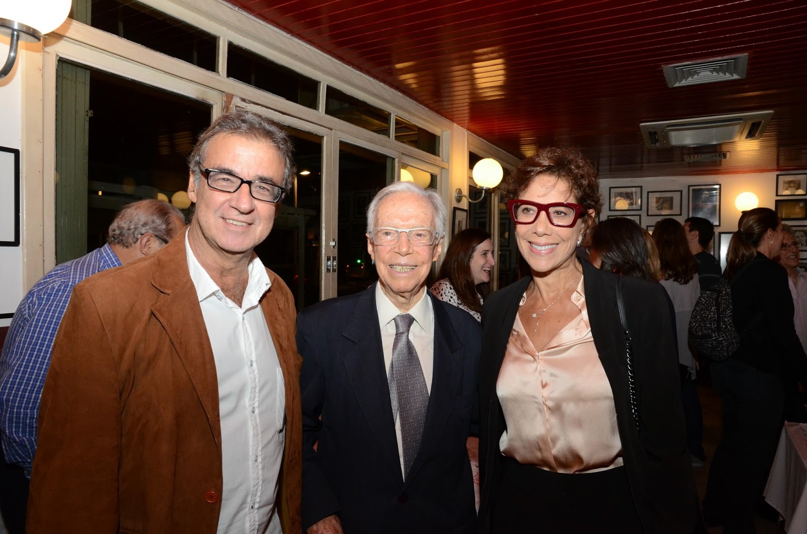 Wilson Figueiredo entre Miguel Paiva e Ângela Vierira
