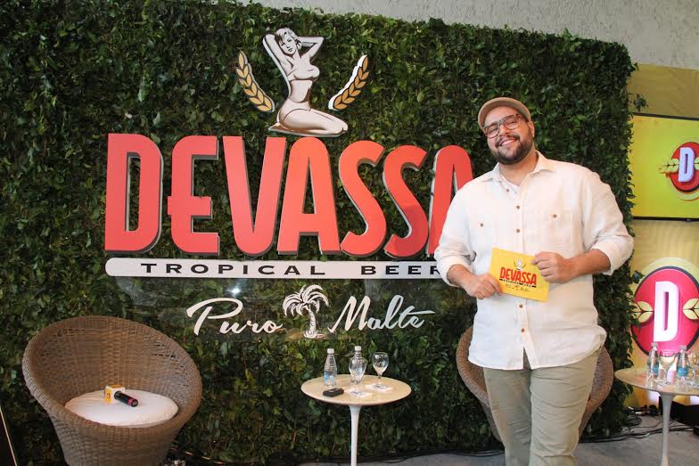 O ator Tiago Abravanel apresentou para a imprensa, na tarde desta quarta-feira, 8, no Espaço Decameron, em Sāo Paulo, a nova cerveja Devassa, “Tropical Lager”, uma cerveja puro malte pensada para o clima brasileiro