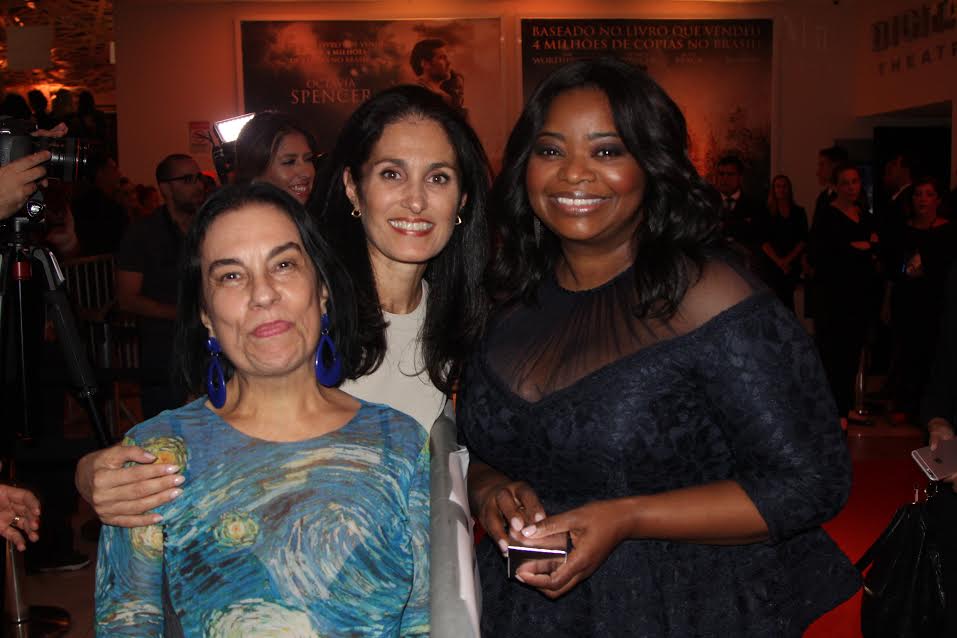 Octavia Spencer posou ao lado da diretora de dublagem, Andréa Murucci e da dubladora Vânia Alexandre que dublou a personagem de Octavia. Fotos Ag News