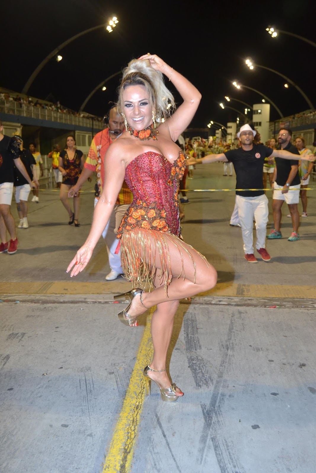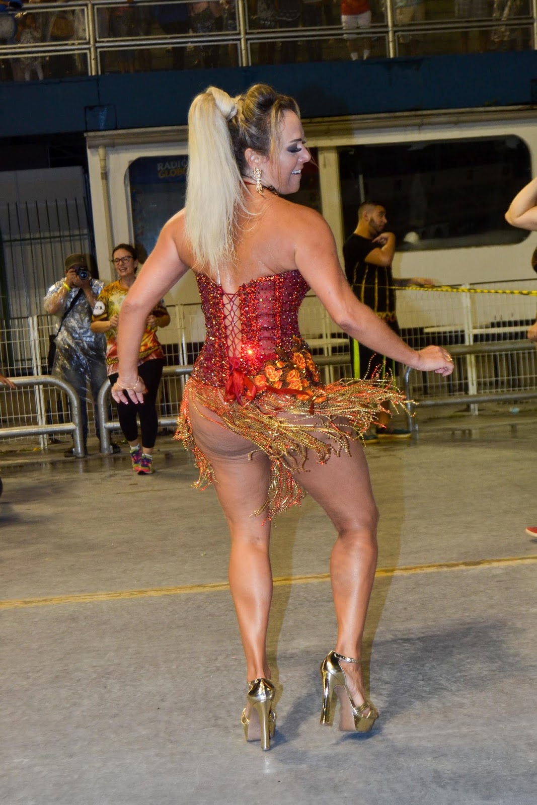 Francine Carvalho, a Musa da Tom Maior desfilou no sábado, debaixo de uma chuvinha persistente, que não abalou a performance da beldade na avenida. Com um enredo que homenageava a Imperatriz Leopoldina, a moça deu show na avenida e arrancou aplausos dos apaixonados por carnaval que compareceram ao ensaio técnico da escola de samba.