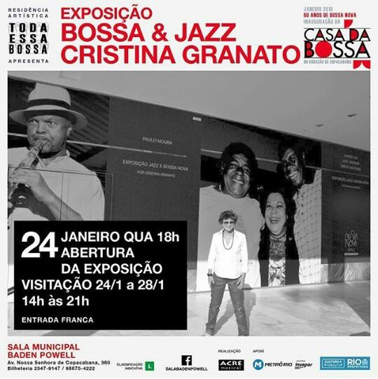 A Sala Baden Powell recebe de hoje até domingo, das 14 às 21h, a Exposição Bossa & Jazz por Cristina Granato. Marcos Vale, João Donato e Roberto Menescal se apresentam hoje durante a abertura do evento.
