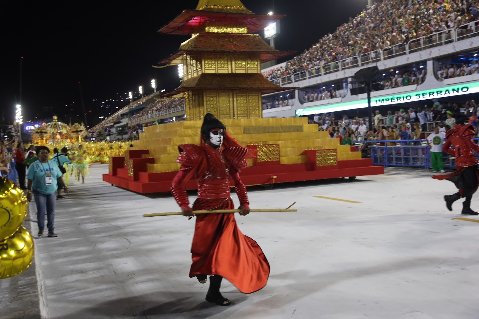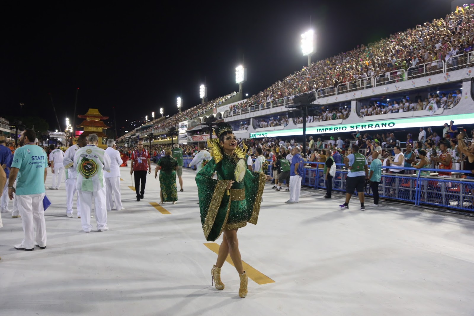 A Império Serrano, primeira escola a desfilar neste domingo, 11, levou para Sapucaí o enredo “O império do samba na rota da China”, do carnavalesco Fábio Ricardo. Além do belo desfile a escola de Madureira homenageou Arlindo Cruz – imperiano tradicional. Vários componentes desfilavam com a foto do cantor estampada na camisa da diretoria.