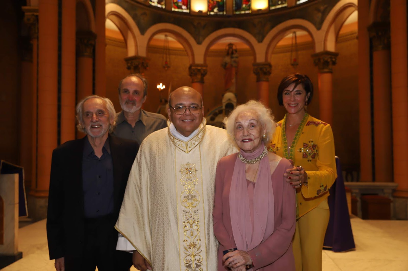 Atriz, diretora e escritora Monah Delacy reuniu amigos e familiares em uma missa celebrada pelo Padre Jorgão, na igreja Nossa Senhora da Paz, em Ipanema, em comemoração aos seus 90 anos de idade e 65 anos de casamento.