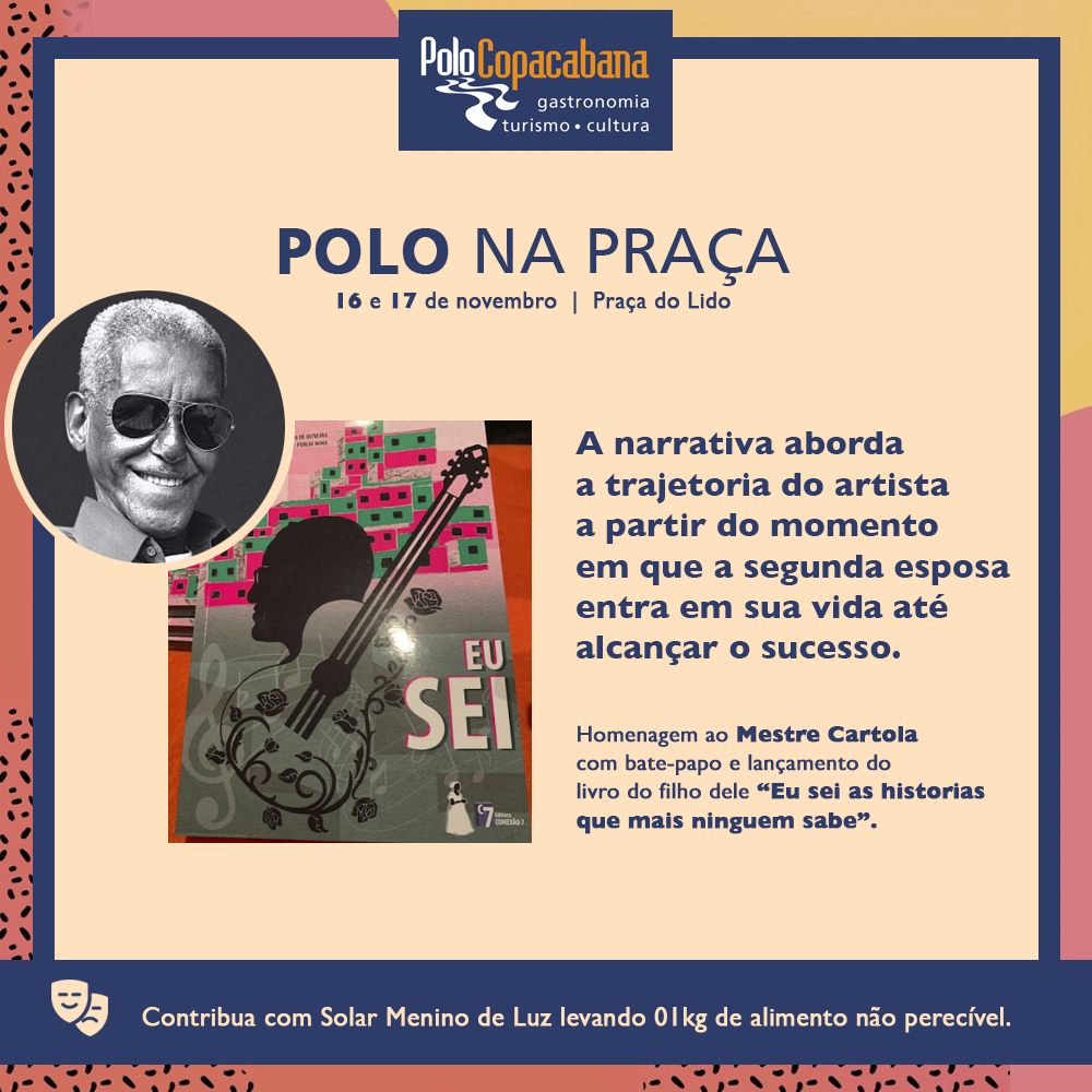 Nos dias 16 e 17 acontece a terceira edição do Polo na Praça – projeto promovido por 40 empresários do Polo Copacabana, que ocupa, uma vez por mês, a Praça do Lido, em Copacabana com atividades gratuitas para toda a família. Esta edição vai contar com o lançamento do livro “Eu sei as histórias que mais ninguém sabe”, do filho do Cartola, Ronaldo Silva de Oliveira, além de atividades de saúde, bem-estar, música, gastronomia e adoção de pets.