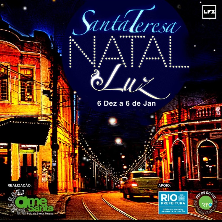 Do dia 06 de dezembro ao dia 06 de janeiro, comerciantes e moradores em uma iniciativa comunitária vão iluminar o casario do Polo Turístico, Gastronômico e Cultural de Santa Teresa para o Natal. Com o apoio da Secretaria Municipal de Desenvolvimento, Emprego e Inovação (SMDEI), que gerencia o programa Polos do Rio, e liderados pela Amesanta, Associação e Amigos e Empreendedores de Santa Teresa, a ideia é criar um corredor iluminado estimulando as pessoas a caminharem à noite pelo bairro.