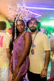 Malu Barretto e Pedro Igor Alcântara comandara, nesse sábado, 29, o último dia de camarote Arara, na Marques de Sapucaí.