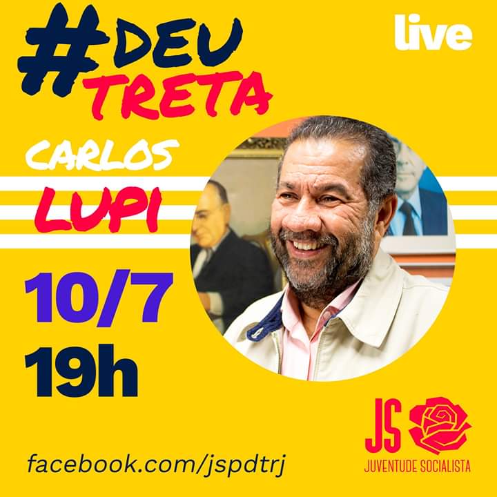 Presidente nacional do PDT, Carlos Lupi faz, nesta sexta-feira, 10, às 19h, a abertura do programa #Deu Treta, da Juventude Socialista do Rio de Janeiro. A transmissão será pelo Facebook da Juventude Socialista do PDT. Entre os temas, as eleições municipais e o desemprego e as consequências da pandemia da Covid-19.