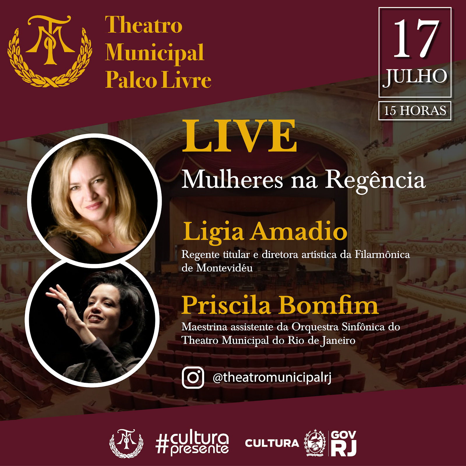 Maestrinas ou regentes, tanto faz a nomenclatura. Em um mundo tão masculino, duas mulheres são exemplos de grandes profissionais no comando de orquestras sinfônicas. Priscila Bomfim é pianista e maestrina assistente da Orquestra Sinfônica do Theatro Municipal do Rio de Janeiro. Ligia Amadio é regente titular e diretora artística da Filarmônica de Montevidéu. Duas histórias incríveis da música de concerto que serão apresentadas na live Mulheres na Regência, nesta sexta 17, às 15h, no Instagram do Theatro Municipal do Rio de Janeiro (@theatromunicipalrj).