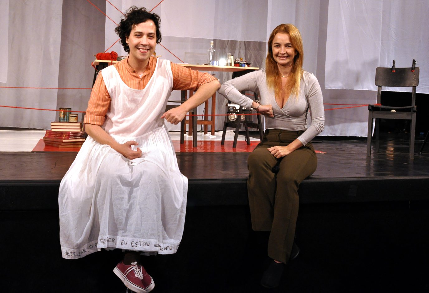 No espetáculo, Arlindo Lopes dialoga com as palavras e obras de José Leonilson, artista integrante da geração 80 conhecido pelo viés autobiográfico de suas pinturas, bordados e objetos. Construída a partir de gravações, escritos e sonhos de Leonilson, a dramaturgia atravessa os pensamentos do artista sobre seu processo criativo, suas memórias de infância, suas paixões e sua relação com a AIDS. A partir deste mês, os espetáculos do Teatro Já terão sempre participações especiais, ontem a convidada foi Simone Cadinelli e na próxima sexta-feira, a convidada será Izabelle Drmunod. Foto Cristina Granato