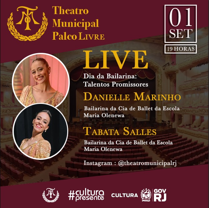 Hoje é comemorado o Dia da Bailarina no Brasil. E o Theatro Municipal do Rio de Janeiro aproveitou a data para revelar os talentos promissores da Escola Estadual de Dança Maria Olenewa e da Cia Bemo (Ballet da Escola Maria Olenewa do Theatro Municipal do Rio de Janeiro). Tabata Salles é formada pela Escola e Danielle Marinho está concluindo a formação clássica em 2020. Elas vão contar um pouco da experiência delas com o ballet. O bate-papo começa às 19h, no Instagram do Theatro Municipal do Rio de Janeiro(@theatromunicipalrj).