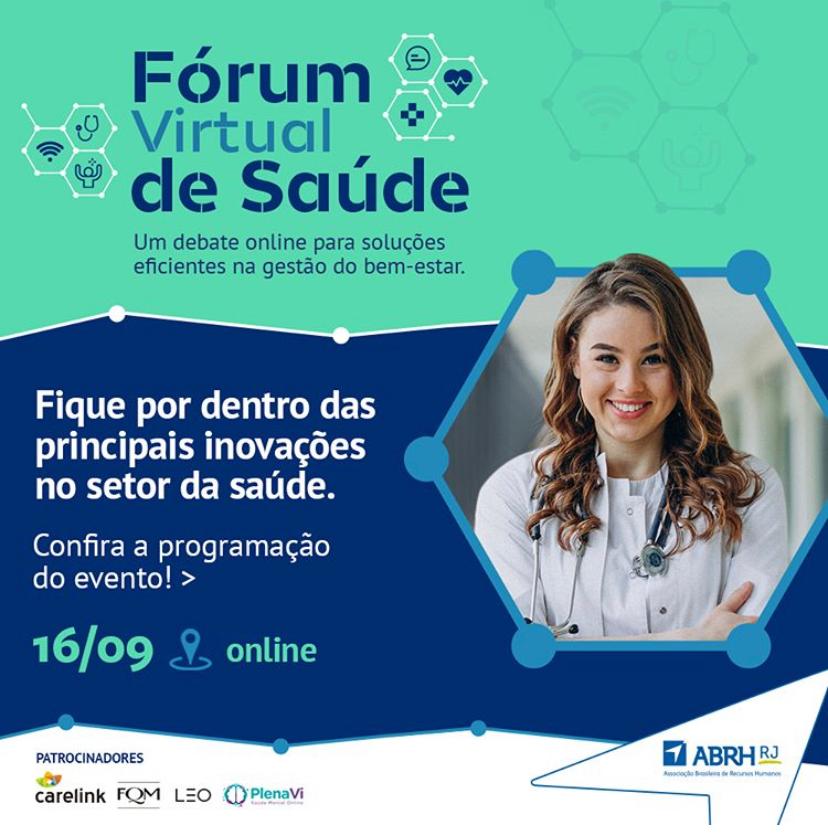 Estão abertas as inscrições para o Fórum Virtual de Saúde da ABRH-RJ. O evento, que será realizado no dia 16, das 9h às 17h30, trará ao público debates como: saúde mental nas empresas em momentos de crise, o impactos da pandemia nas operadoras e seguradoras, as soluções no setor de saúde, o suporte que novas tecnologias têm dado ao setor nesse novo cenário e muito mais. Entre os palestrantes confirmados estão: Carla Tieppo – Neurocientista, Rogério Scarabel – Presidente da Agência Nacional de Saúde Suplementar/ANS, Vera Valente – Diretora Executiva da FenaSaúde e outros nomes importantes. SERVIÇO: Confira a programação completa e faça já a sua inscrição por meio do link bit.ly/forum-virtual-