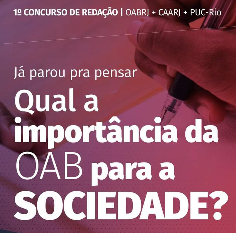 Coordenado por Ana Tereza Basílio, vice-presidente da OAB-RJ, o Primeiro Concurso de Redação da OAB-RJ, em parceria com a CAARJ e a PUC-Rio , terá o resultado das premiações anunciado em solenidade marcada para esta quinta-feira, 4, às 15h, na sessão do Conselho Pleno da OAB-RJ. O evento será transmitido pela plataforma Zoom. O tema do concurso foi: Qual é a importância da OAB para a sociedade? O primeiro colocado receberá um notebook e R$ 20 mil em créditos a serem usados em pagamento de parcelas dos cursos oferecidos pelo Instituto de Direito PUC-Rio. O segundo lugar ganhará um celular Samsung e R$ 10 mil em créditos estudantis. O prêmio do terceiro colocado é uma bolsa de estudos na ESA, além de R$5 mil. Do quarto colocado, ao décimo lugar, cada um receberá R$ 1 mil em créditos estudantis.