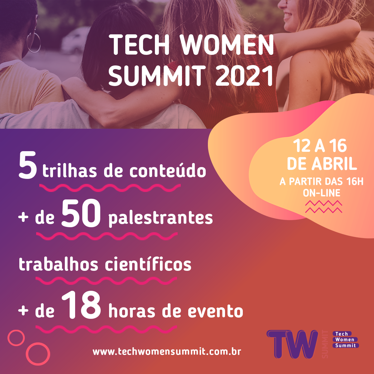 Inovação, Inspiração e Inclusão na tecnologia. É isso que o evento Tech Women Summit visa levar ao público em geral, especialmente às mulheres que querem aprender mais sobre tecnologia e áreas afins, pois vivemos em um mundo conectado e cada vez mais digital em todos os segmentos. O evento que será realizado durante cinco dias, de 12 a 16 de abril, das 16h às 19h45, em edição totalmente digital devido a pandemia de Covid-19, traz somente mulheres palestrantes de destaque para compartilhar conhecimento e inspirar. São cerca de 50 mulheres, em cinco trilhas de conteúdo muito atuais e importantes no cenário tecnológico. O público poderá desfrutar de palestras e debates enriquecedores das 5 trilhas: “A Democratização da Transformação Digital”; “Segurança, Risco e Compliance”; “Cultura e Liderança”; “UX como Vetor de Inovação, Inclusão e Diversidade” e “Inteligência Competitiva e Novas Tecnologias”. Simultaneamente, os participantes também poderão conferir as feiras de empresas, de startups de liderança feminina e de carreiras, com exposição de produtos e serviços que promete ser o “One Stop Shop” da Diversidade e Inovação para todo o mercado da tecnologia. Inscrições e informações: https://