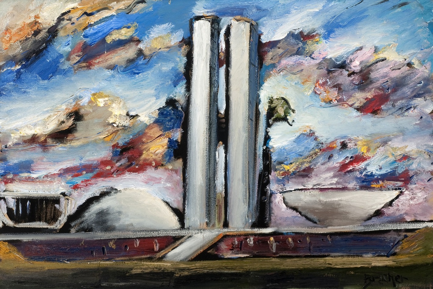 Em suas telas, estão lugares emblemáticos como Congresso Nacional, Catedral de Brasília, Ponte Juscelino Kubitschek, Praça dos Três Poderes, Memorial JK, Esplanada dos Ministérios, Supremo Tribunal Federal e Embaixada da Itália. A série também traz 30 gravuras feitas, posteriormente, no Castelinho dos Bracher (Juiz de Fora). Parte dessas obras pode ser vistas no tour virtual do Ateliê Casa Bracher http://www.ateliecasabracher.com/ . Fotos: Sérgio Pereira da Silva