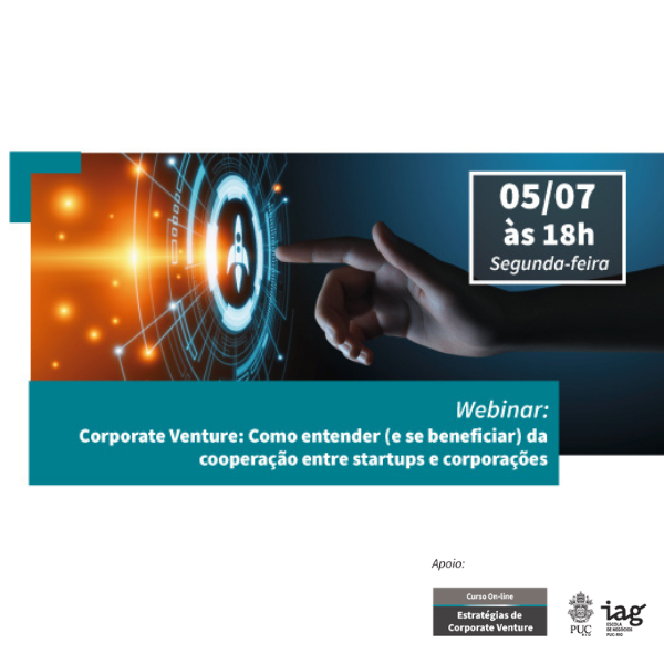 O IAG – Escola de Negócios da PUC-Rio está com inscrições abertas para o webinar “Corporate Venture: Como entender (e se beneficiar) da cooperação entre startups e corporações”, que ocorrerá no dia 05 de julho (segunda-feira), às 18h. O evento terá como palestrantes Hudson Mendonça (Economista e MsC em Eng. de Produção pela UFRJ); Ricardo Moraes (Head de Corporate Venture Capital & Open Innovation) e Fábio Paula (Professor do IAG Business School – PUC-Rio). A iniciativa faz parte do curso online Estratégias de Corporate Venture, com aulas a partir de 03 de agosto de 2021. As inscrições devem ser feitas pelo link https://bit.ly/ webinar31IAGy e a transmissão acontece pela página do IAG (https://www.youtube.com/user/ IAGPUCRIO) no YouTube.