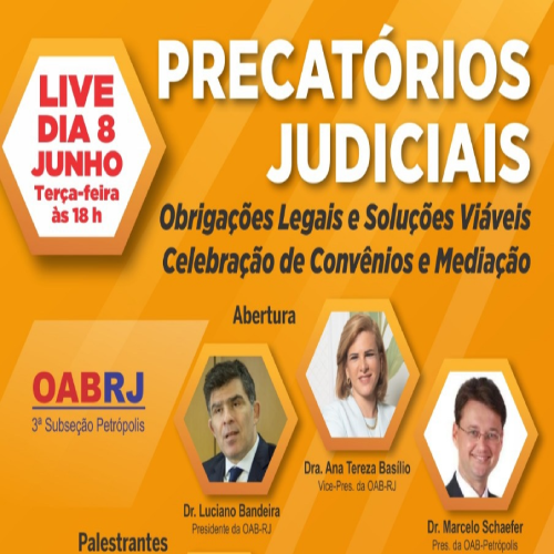 Vice-presidente da OAB-RJ, Ana Tereza Basílio, o presidente da entidade, Luciano Bandeira e o presidente da OAB de Petrópolis, Marcelo Schaefer, vão fazer a abertura do Seminário virtual sobre Precatórios Judiciais, Obrigações Legais e Soluções Viáveis, Celebração de Convênios e Mediação, na próxima terça-feira, dia 8, às 18h. A transmissão será pelo youtube da OAB de Petrópolis.