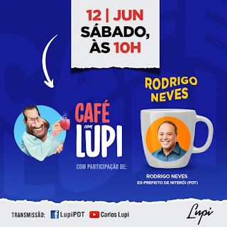 Ex-prefeito de Niterói e cotado para ser o candidato do PDT às eleições para o governo do estado, Rodrigo Neves é o convidado do Café com Lupi deste sábado, às 10h. A transmissão será pelo Facebook e pelo yotube de Carlos Lupi, presidente nacional do PDT.