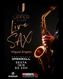 Hoje às 20h tem Upper Class Live Sax com o saxofonista Miguel Ângelo no Península Open Mall! A Live Sax será a atração de inauguração do novo Lounge, conceito da Carvalho Hosken, que estreia com a Experiência Upper Class & BMW ! Curta a Live Sax no Península Open Mall ou assista no Instagram @carvalhohoskenoficial .