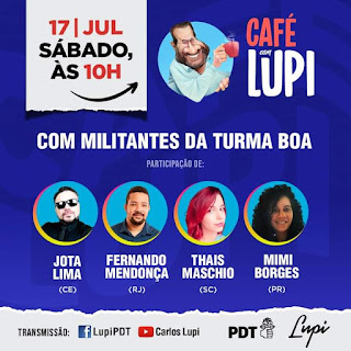 Presidente nacional do PDT, Carlos Lupi vai entrevistar, neste sábado, dia 17, jovens lideranças e militantes de seu partido. São eles: Jota Lima, do Ceará, Fernando Mendonça, do Rio de Janeiro, Thais Maschio, de Santa Catarina, e Mimi Borges, do Paraná. A transmissão será às 10h, pelo youtube e pelo Facebook.