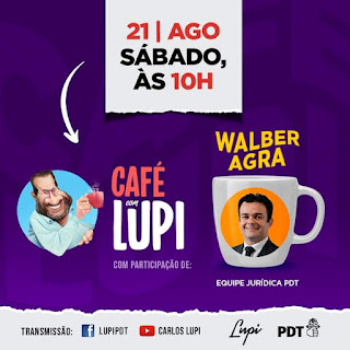Livre Docente pela USP, pós-doutor pela Universidade Montesquieu Bordeux, membro da Comissão de Estudos Constitucionais do Conselho Federal da OAB, Procurador do Estado de Pernambuco e integrante da assessoria jurídica do PDT, o advogado Waber Agra é o convidado do Café com Lupi deste sábado, às 10h. A transmissão será pelo Facebook e pelo youtube de Carlos Lupi, presidente nacional do PDT.