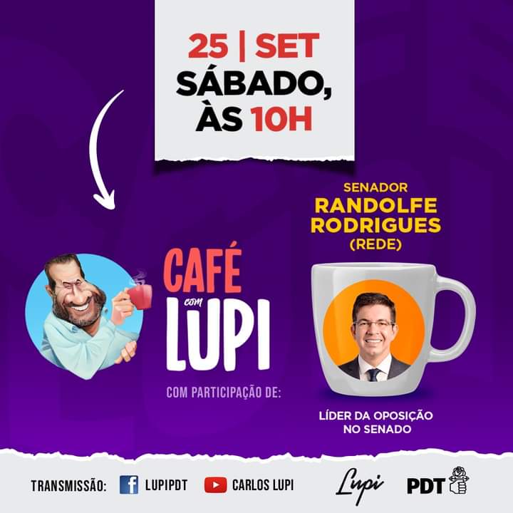 O Senador Randolfe Rodrigues, do Amapá (Rede), vice-presidente da CPI da Covid, é o convidado do Café com Lupi deste sábado, dia 25, às 10h, pelo youtube e pelo facebook . O tema do encontro virtual é a CPI da Covid no Senado e atual situação do país. Hoje, Carlos Lupi e Ciro Gomes participam da cerimônia de filiação ao PDT do delegado Orlando Zaccone, que atuou no caso Amarildo (investigou os policiais condenados, em 2016, pelo desaparecimento e morte do pedreiro) e criou, há alguns anos , o movimento Policiais Antifascismo. O evento será às 19h, no Tijuca Tênis Clube, com limitação de convidados, por causa da pandemia, e será transmitido pelas redes sociais.
