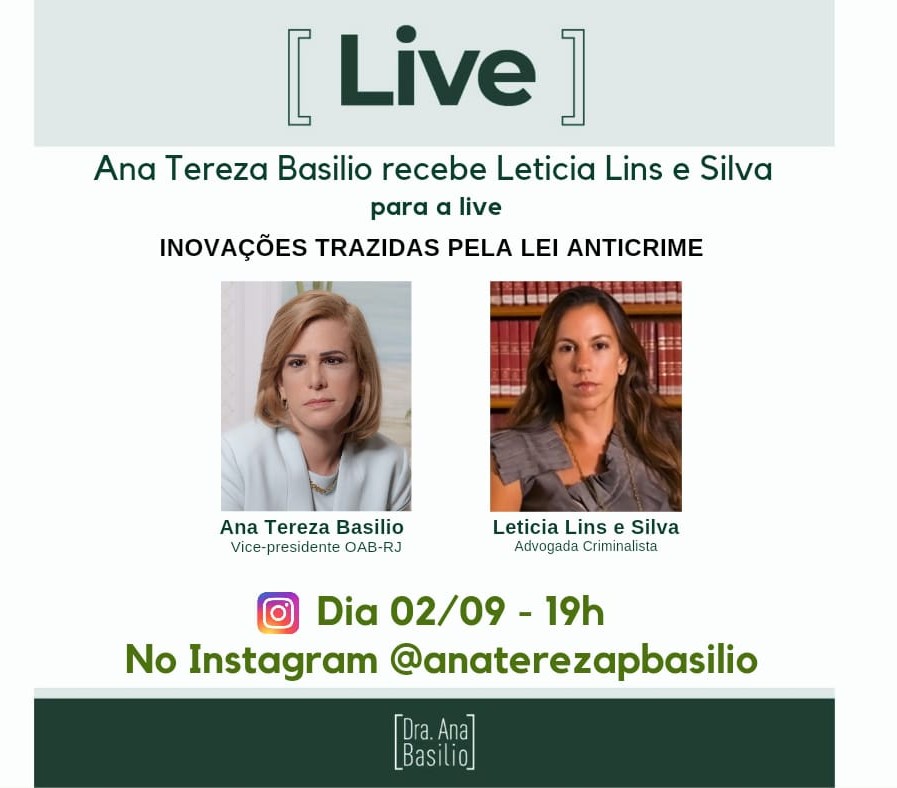 Uncategorized Live sobre a Lei Anticrime Luiz Claudio de Almeida 2 de setembro de 2021 Redes Sociais A advogada criminalista Patrícia Lins e Silva é a convidada de Ana Tereza Basílio, vice-presidente da OAB-RJ, hoje, às 19h, na live sobre Inovações trazidas pela Lei Anticrime. A transmissão será pelo Instagram de Ana Tereza Basílio.Continue ReadingPrevious: Atriz Vanessa Machado se destaca nas telinhas e no segmento de belezaNext: Paola Bonelli lança podcast “Um Olhar do Artista” Postagens Relacionadas Uncategorized Nova idade Luiz Claudio de Almeida 4 de agosto de 2022 Uncategorized Parceria Luiz Claudio de Almeida 3 de agosto de 2022 Uncategorized A Cor do Som abre o Festival Sunset Music Brazil Luiz Claudio de Almeida 2 de agosto de 2022