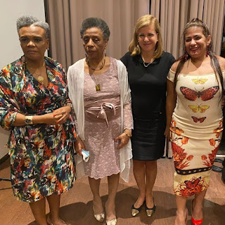 A Advocacia Preta Carioca homenageou, em jantar no Vila Galé, na Lapa, a chapa de Luciano Bandeira e Ana Tereza Basílio (presidente e vice-presidente da OAB-RJ) à reeleição , e, também, a desembargadora Ivone Ferreira Caetano. Na foto, Ana Tereza Basílio, Ivone Ferreira Caetano, Bárbara Ewers e Angela Borges Kimbangu.