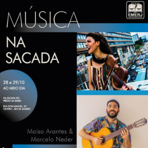 O projeto “Música na Sacada” da Escola da Magistratura do Estado do Rio de Janeiro (EMERJ) ganhará mais uma edição nos dias 28 – Dia do Servidor Público – e 29. A apresentação artística, sempre às 12h, é inspirada na iniciativa dos europeus nos primeiros meses da pandemia, quando músicos tocavam e cantavam nas sacadas dos prédios para aliviar a tensão e tristeza vivida com a pandemia da Covid-19. Para essa edição, se apresentarão a cantora e compositora Maisa Arantes, e o violonista e educador Marcelo Nedes. As apresentações acontecem na sede da EMERJ, na Rua Domo Manuel, nº25, Centro. As doações poderão ser realizadas no andar térreo da instituição, com todos os cuidados devido à pandemia da Covid-19. Para mais informações, entre em contato com o Departamento de Comunicação da EMERJ (DECOM) pelo e-mail: emerj.decom@tjrj.jus.br.