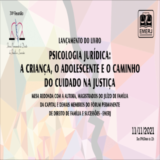 A psicóloga Glicia Brazil, membra do Fórum Permanente de Direito de Família e Sucessões da Escola da Magistratura do Estado do Rio de Janeiro (EMERJ) e especialista em Recursos Humanos pela Universidade Pontifícia Católica (PUC/RJ), lançará o livro Psicologia Jurídica: a criança, o adolescente e o caminho do cuidado na Justiça. O evento é realizado pelo Fórum Permanente de Direito de Família e Sucessões e pelo Instituto Brasileiro de Direito de Família (IBDFAM). No dia 11, às 9h30, por meio das plataformas Zoom e YouTube, haverá uma mesa redonda com a autora, magistrados do juízo de família da capital e os demais membros do Fórum da EMERJ. A abertura do encontro será feita pela desembargadora Kátya Maria Monnerat, presidente do Fórum.