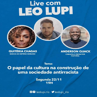 Diretor da Fundação Leonel Brizola , o jornalista Leo Lupi será o mediador da live com o tema “O papel da cultura na construção de uma sociedade antirracista,hoje, às 19h, pelo Instagram e Facebook leolupi.rio. Os convidados são Quitéria Chagas, rainha do Império Serrano, e Anderson Quack, cineasta e produtor cultural.