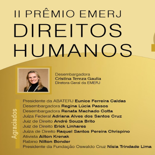 A Escola da Magistratura do Estado do Rio de Janeiro (EMERJ) realizará a segunda edição do Prêmio EMERJ Direitos Humanos, no próximo dia 10, Dia Internacional dos Direitos Humanos. O evento será em formato híbrido, presencialmente no auditório Desembargador Paulo Roberto Leite Ventura e virtualmente na plataforma YouTube. A solenidade, que será conduzida pela desembargadora Cristina Tereza Gaulia, diretora-geral de EMERJ, reunirá magistrados, pesquisadores, professores, mestres, doutores e especialistas que contribuíram, durante o ano, para a defesa dos direitos humanos.