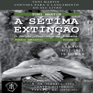 Em meio a 19ª edição da Flip, onde questões coletivas como a crise climática e desigualdade social norteiam o evento, que propõe uma reflexão sobre outras maneiras de estar no mundo, o poeta, biólogo, mestre em gestão ambiental e cineasta Toni Martin lança dia 04, às 18h, na Livraria de Paraty, pela Editora Unilivre (Universidade Livre do Meio Ambiente), o livro “A Sétima Extinção”. O fim da consciência humana.