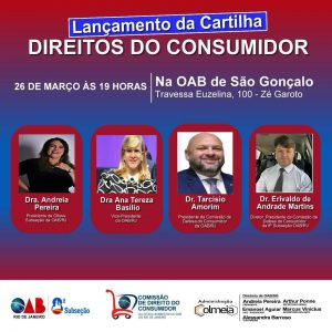 Também estarão no evento presencial, a presidente da OAB de São Gonçalo, Andreia Pereira, o presidente da comissão de Direito do Consumidor da OAB-RJ, Tarciso Amorim, e o presidente da comissão de Defesa do Consumidor de São Gonçalo, Erivaldo Andrade Martins.