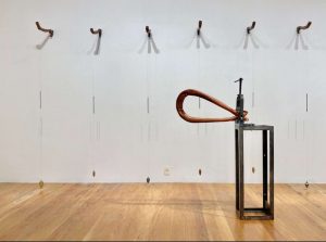 Na charmosa galeria carioca Movimento, no Baixo Gávea, ele expõe esculturas que juntam a energia de sua matéria-prima preferida com detalhes em metal. Madeiras como cedro, peroba rosa, parajú, ipê pesquisadas em demolições ganham formas brutas e sutis ao mesmo tempo