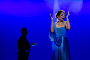 A cenografia de J. C. Serroni é arrojada e adequada. Apresenta um palco em vários níveis, com um fundo branco que serve para projetar a iluminação, e é decorado com plantas.