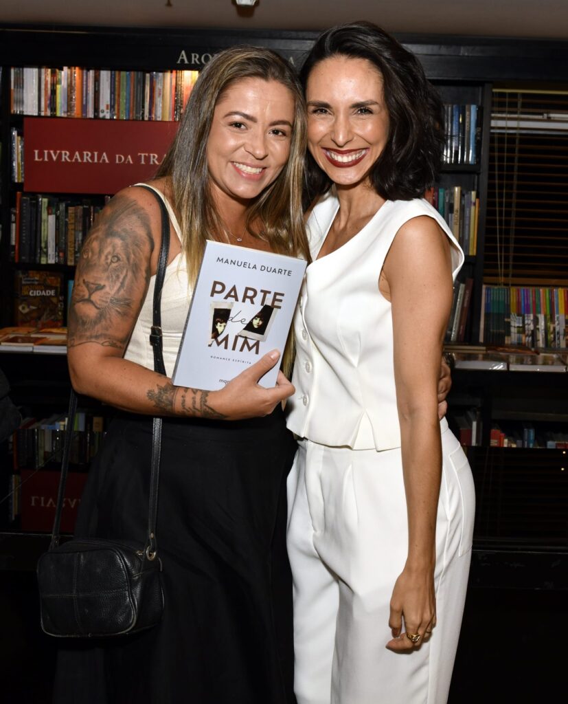 Ela que recentemente, viveu a ambiciosa Patty, na novela “Família é tudo”, recebeu a amiga de longa data, a jornalista Ana Paula Araújo, em um bate-papo, antes da sessão de autógrafos.
