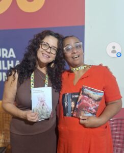 Em outro momento, também ,a Flip, Marta Andrade troca figurinhas com a autora Lilia Guerra