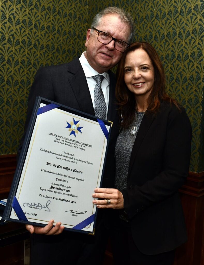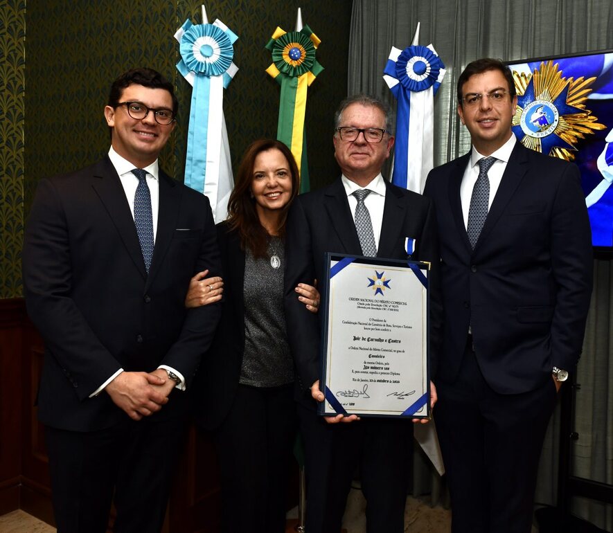 Em solenidade realizada ontem na Confederação Nacional do Comércio (CNC), no Rio de Janeiro, os doutores Jair de Carvalho e Castro, Maurício Yunes Ibrahim e Antonio Melo Alvarenga Neto foram condecorados com a Ordem Nacional do Mérito Comercial, no grau Cavaleiro. O evento reuniu autoridades, empresários e convidados em reconhecimento à destacada atuação dos homenageados no setor. Fotos Cristina Granato.