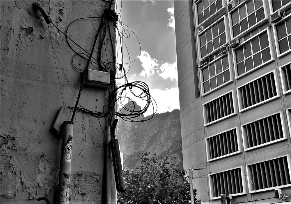 Pois é; o Rio caminha assim. São milhares de metros de fios enfeiando a cidade mais bela do Planeta, descaso total daqueles que deveriam zelar pelo patrimônio da exterioridade carioca, isso sem falar na poda das árvores que, para além de encobrirem toda a beleza que a cidade nos deleita, causam transtornos pela falta de manutenção.