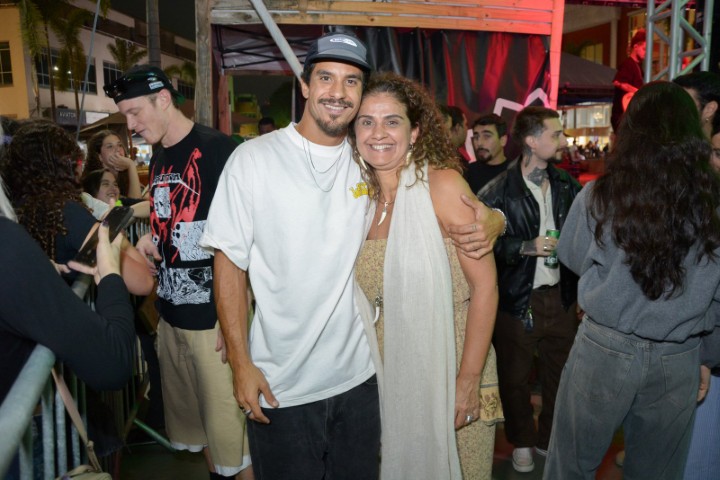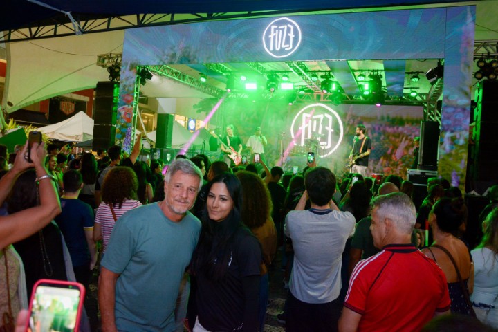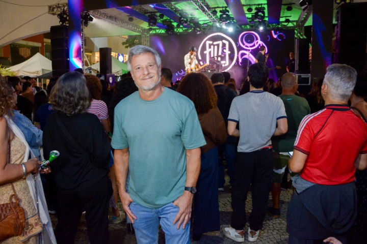 Ao lado da ex-mulher Sheyla Beta, mãe do Diogo Novaes, Marcello Novaes curtiu o show no meio do público presente no evento Conexão Rio, que acontece no shopping Downtown, na Barra da Tijuca, Rio de Janeiro, e foi assediado por alguns admiradores.