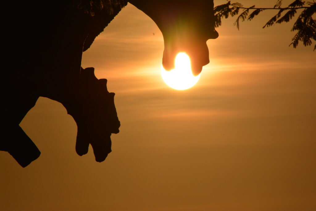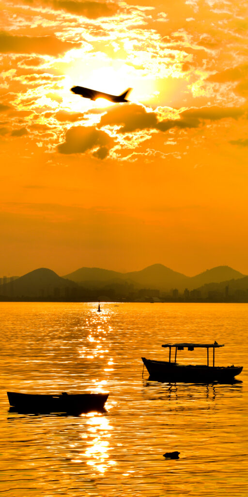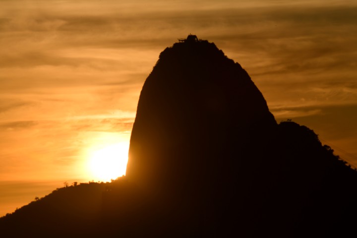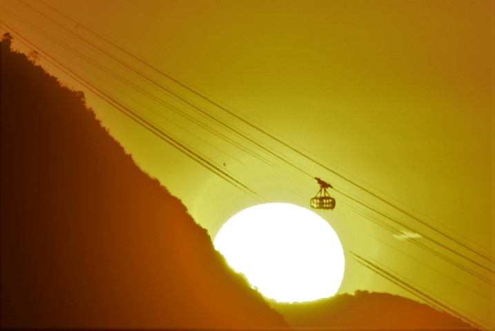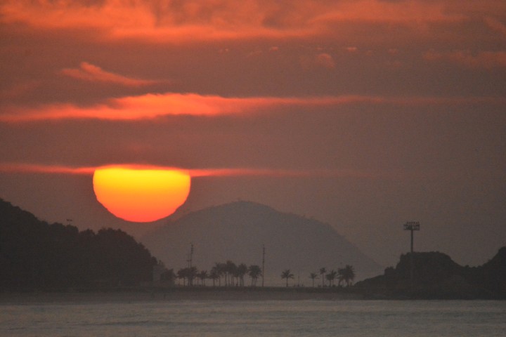 Tons azulados-escuros, em lilás, avermelhados, alaranjados, doirados, e, por fim, amarelados-gema-de-ovo invadem o famoso “lindo céu azul-de-anil” do “…Rio dos sambas e batucadas…” nos versos do poeta Silas de Oliveira. O Astro-Rei marca presença!